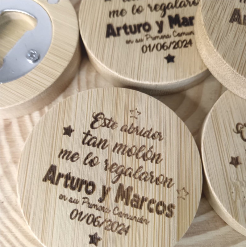 Presentamos nuestro Abridor de de Bambú Grabado a Láser, el compañero perfecto para tus momentos de celebración. 🎉✨ La madera de bambú le da un toque natural y elegante que hará que todos pregunten: «¿Dónde lo conseguiste?» ¡Nunca más tendrás que luchar con las tapas! ¡Sorprende a tus amigos y familiares!