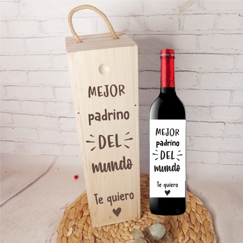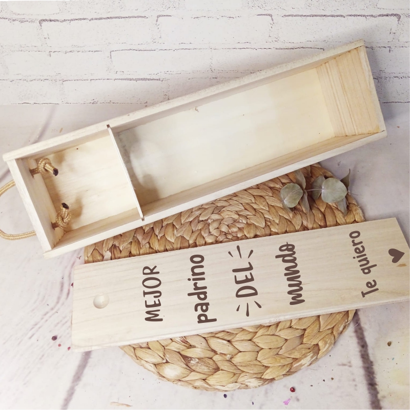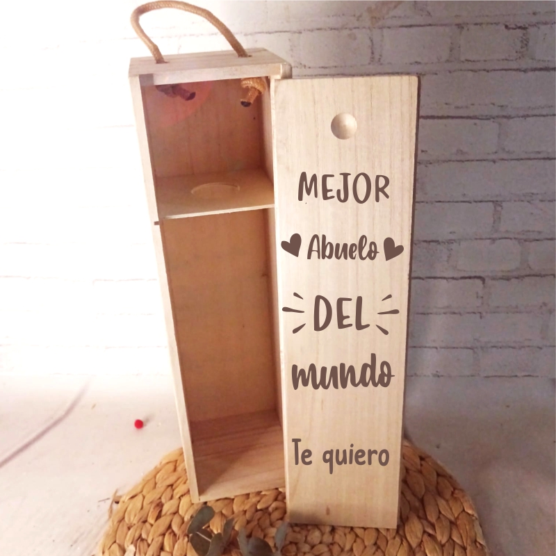 Nuestra caja de madera grabada con mensaje personalizado + botella de vino incluida es exactamente lo que necesitas.