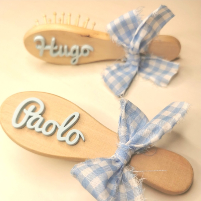 – cepillo : Incluye cepillo personalizado con el nombre de cada invitado y lazo vichy.