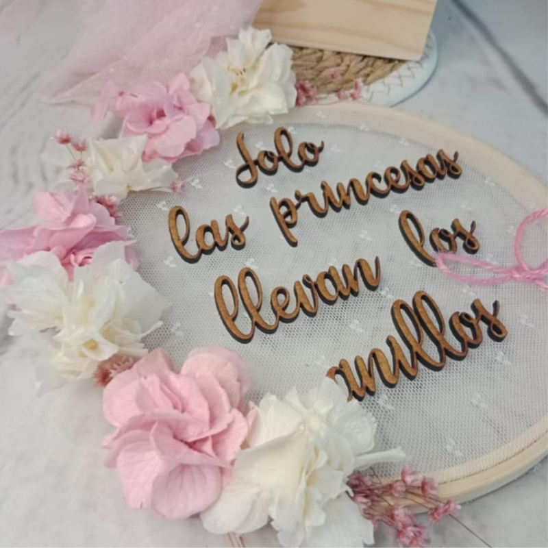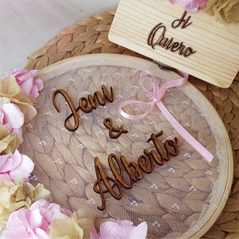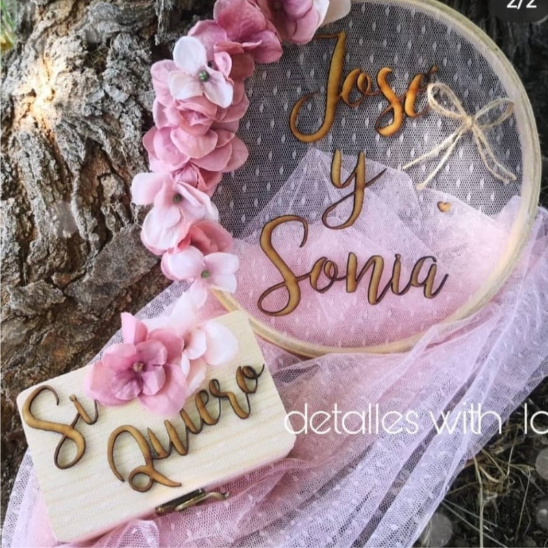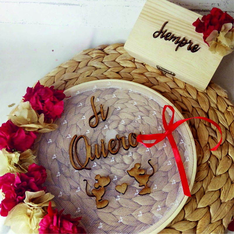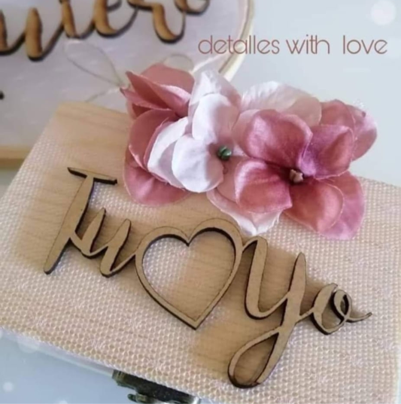 Incluye bastidor y caja madera personalizada con la frase y diseño que más te guste.