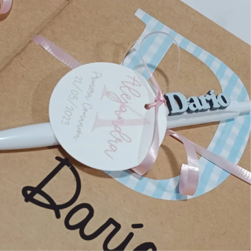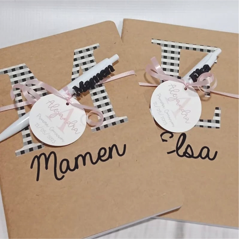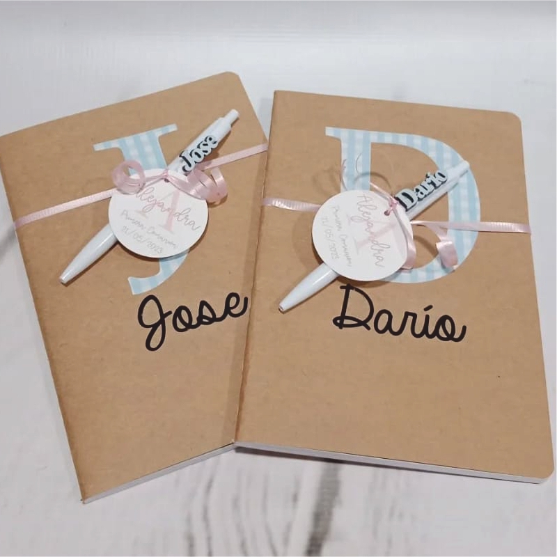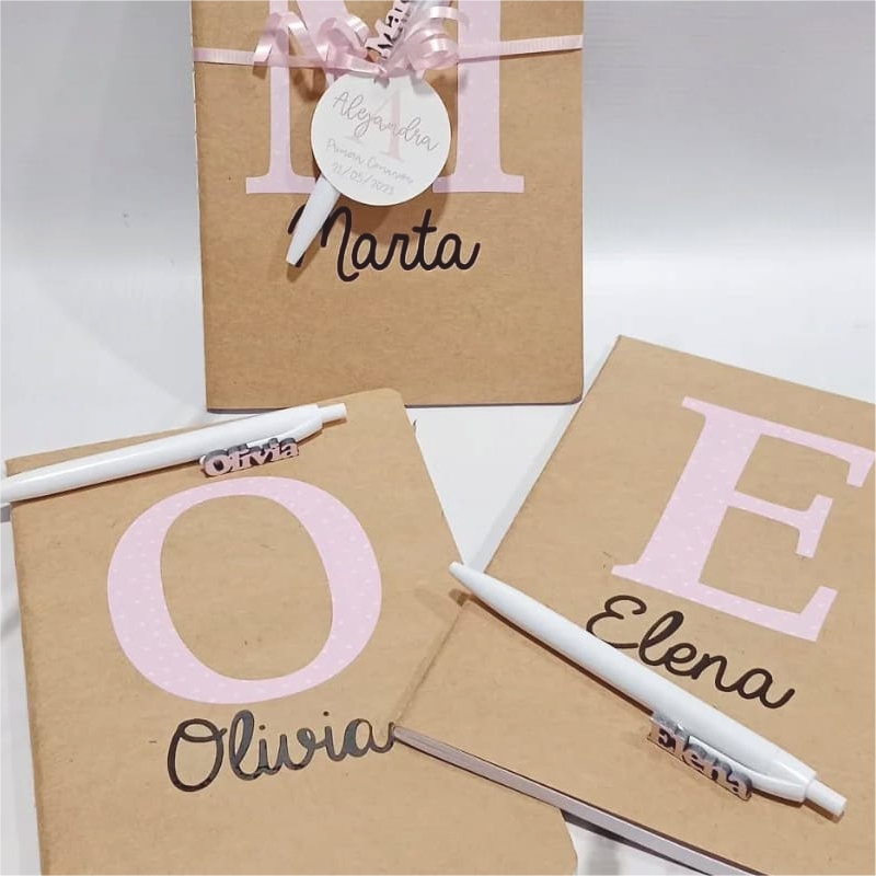 Incluye libreta y bolígrafo personalizado con nombre