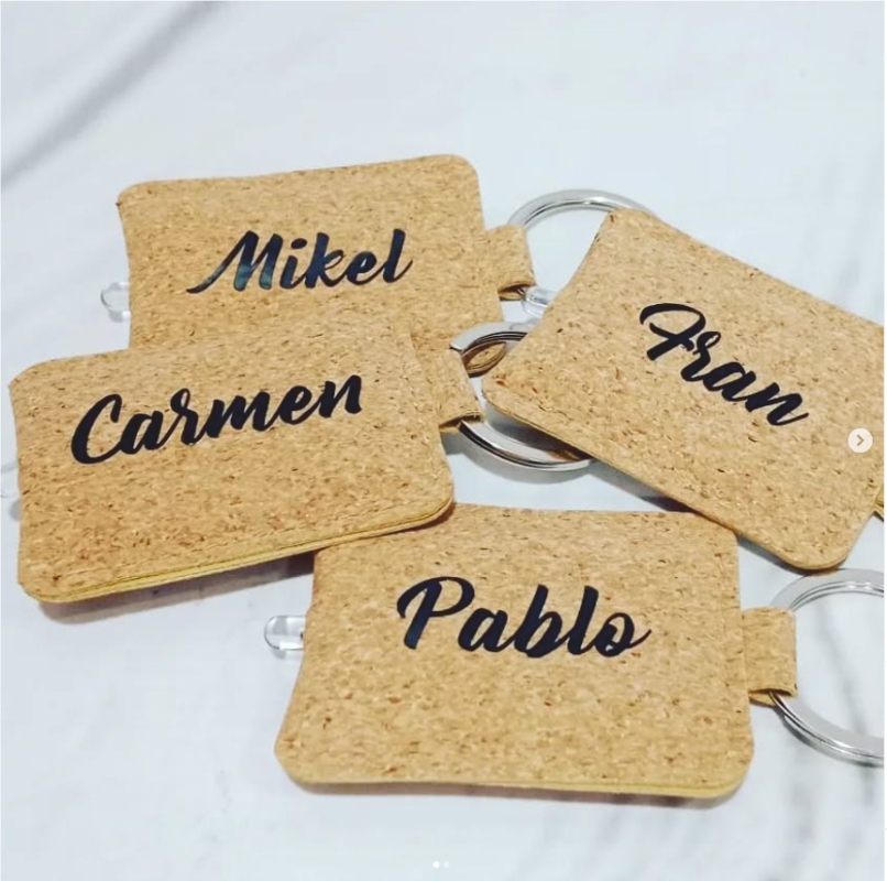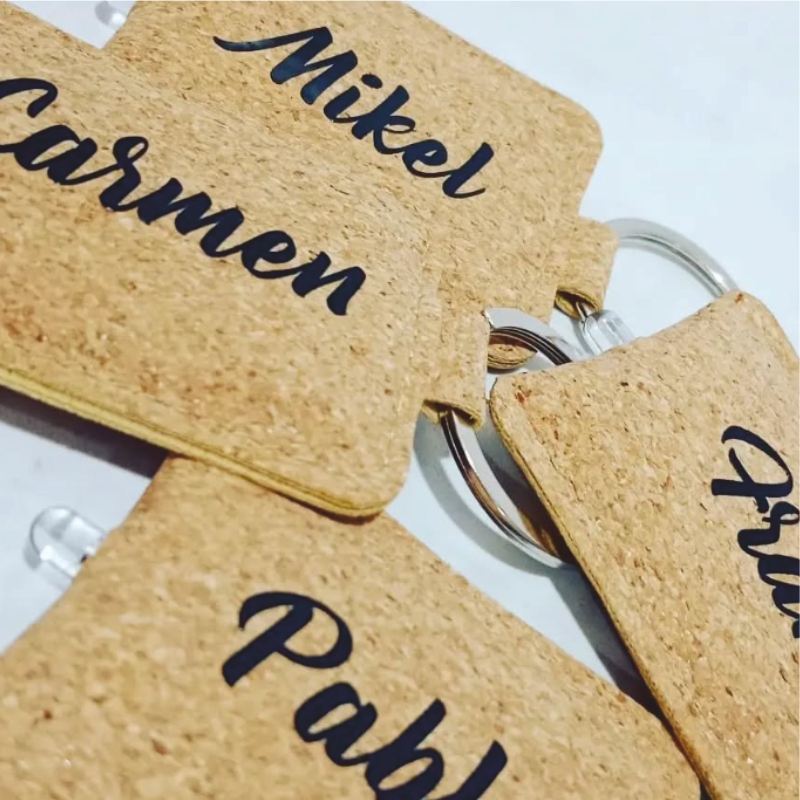– Llavero linterna :Llavero linterna fabricado en corcho natural. Con luz led que se activa presionando el cuerpo del llavero y alimentación a pilas (de botón incluidas).