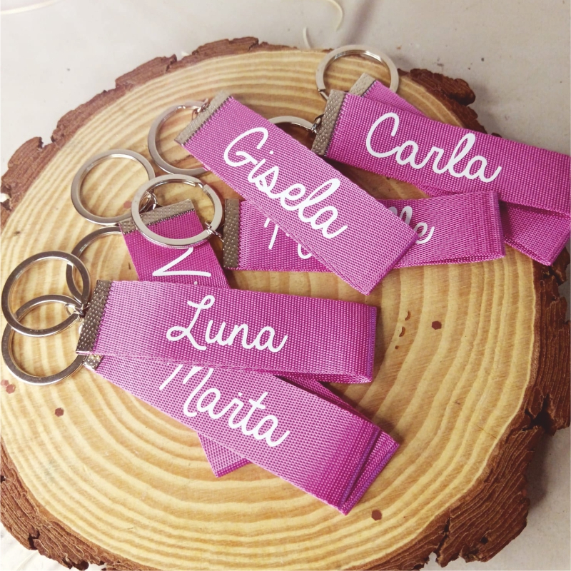 Incluye llavero con nombre de cada invitado presentado en bolsa y lazo con tarjetita en el diseño que más te guste.
